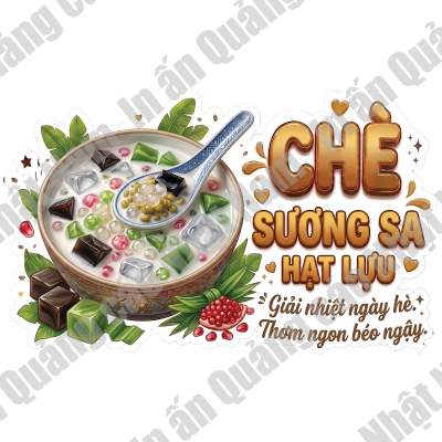 In UV decal các món chè là công nghệ in tem nhãn sử dụng mực UV kết hợp với hệ thống đèn sấy UV để làm khô mực ngay lập tức trên bề mặt decal. Công nghệ này giúp hình ảnh in sắc nét, màu sắc sống động và có độ bền cao.