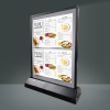 Hộp đèn để bàn là loại bảng hiển thị có tích hợp đèn LED bên trong, sử dụng khung nhôm hoặc mica, hiển thị nội dung in trên film backlit. Kích thước phổ biến A4 và A5 phù hợp đặt trên bàn, quầy lễ tân hoặc bàn ăn.