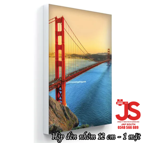 Hộp đèn vải 1 mặt dày 12cm thường được thiết kế theo dạng khung nhôm định hình nhập khẩu, có khả năng tháo lắp dễ dàng. Độ dày 12cm là kích thước lý tưởng, giúp phân bố ánh sáng đều từ hệ thống LED gắn bên trong, không gây tình trạng loang sáng hay tối góc.