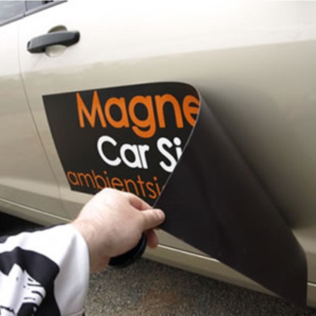 Đây là loại decal được in UV trên bề mặt và bồi lên lớp nam châm dẻo, có khả năng hút trực tiếp lên các bề mặt kim loại như sắt, thép (xe ô tô, bảng kim loại…). Không cần keo, không làm hư hại bề mặt khi sử dụng.