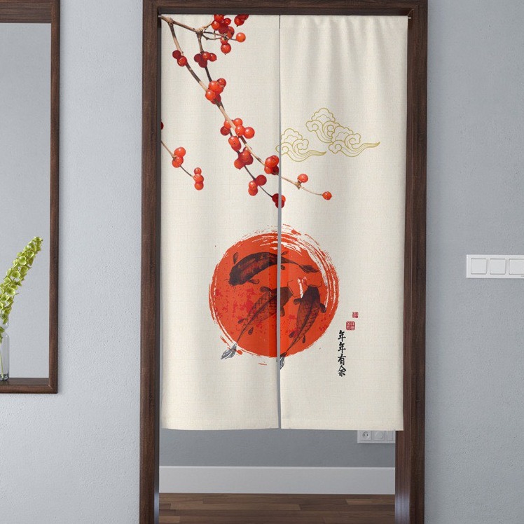 Rèm Noren là loại rèm ngắn truyền thống của Nhật Bản, thường được treo trước cửa ra vào hoặc giữa các không gian. Khi ứng dụng công nghệ in UV, hình ảnh, logo hoặc họa tiết được in trực tiếp lên vải với độ sắc nét cao, bền màu và không lem.
