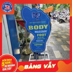 Đây là loại standee sử dụng khung sắt ống tròn được uốn cong tạo hình hiện đại, kết hợp với bề mặt in UV sắc nét, giúp tổng thể mềm mại, sang trọng và thu hút ánh nhìn.