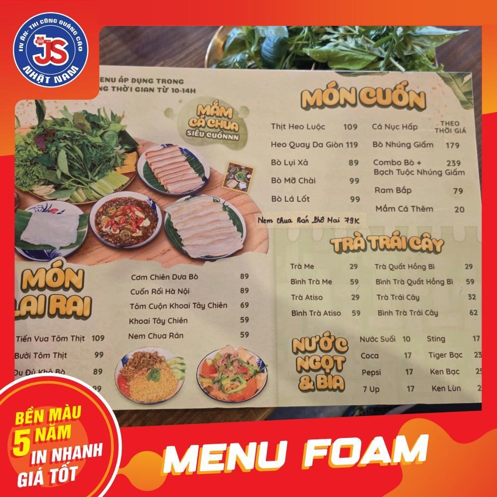 MENU IN UV BỒI FOAM CAO CẤP – GIAO HỎA TỐC HCM