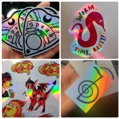 Tem nhựa Holographic 7 màu, chống nước, cán bóng hoặc mờ , A3 size